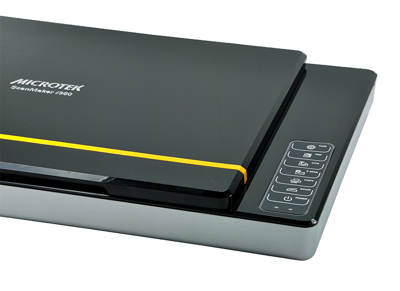 ScanMaker i360提供六个扫描任务快捷按键,分别为:扫描、打印、EMAIL、OCR、 PDF和WEB键。把硬件和软件结合在一起,操作扫描仪就像使用家用电器一样简单。按键设置在扫描仪前右端,人性化的设计使用户只需轻轻触按就能启动扫描程序,完成指定的扫描任务。大大简化了扫描流程,节省用户宝贵的时间,有效的提升工作效率。